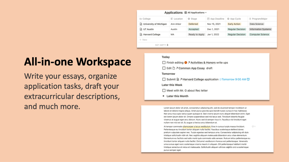 CollegeApp OS is an all-in-one application management dashboard, resource list, and personal guide to help you crush the college application process. It covers everything from making a college list and writing essays to nailing interviews and deciding where to go.